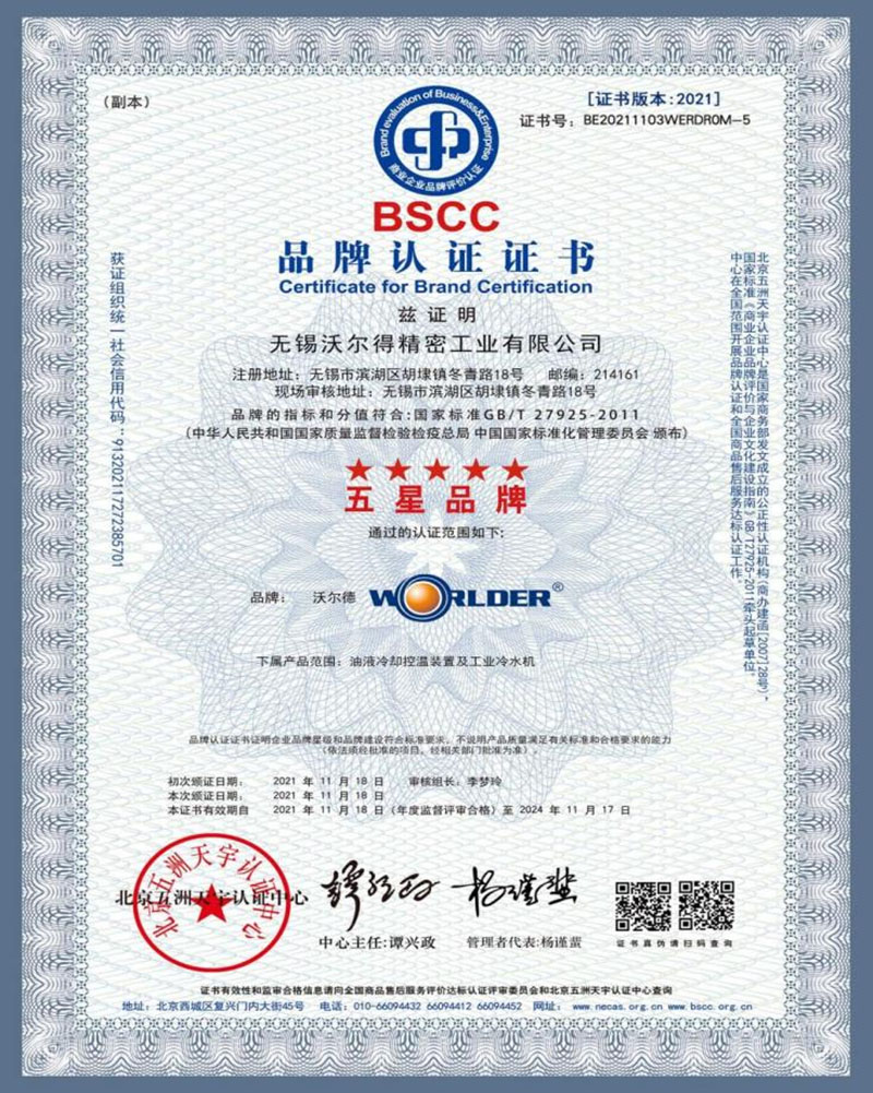2021年11月公司通過了中國標準化管理委員會頒布的“標準GB/T27925-2011”品牌認證,榮獲“五星品牌”。