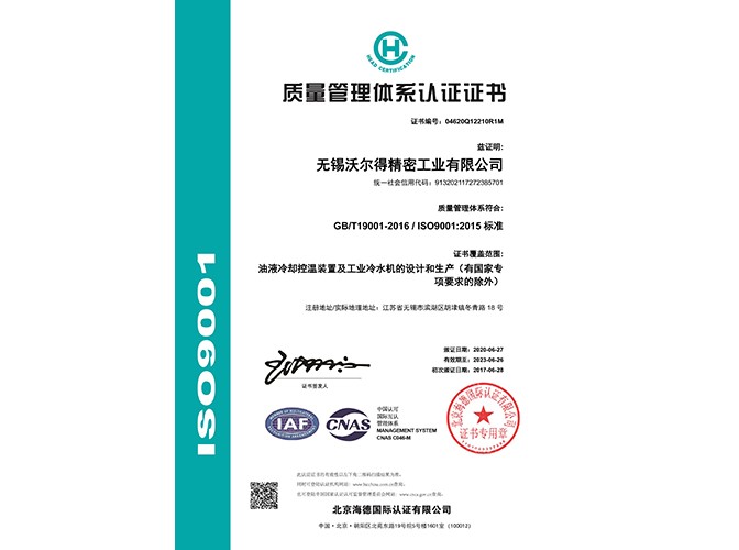 無錫沃爾得企業簡介無錫沃爾得精密工業有限公司成立于2001年,坐落于風景旖旎的太湖之濱,建筑面積14000余平方米,注冊資本1000萬元。經過二十一年的發展進程,公司擁有一批經驗豐富的制冷、流體、機械、自動化控制...